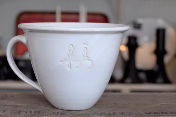 En fantastisk tekopp i större modell med härlig rustik känsla som ligger perfekt i handen. För de som är lite känsliga för strävhet lämpar sig denna silkeslena vitglaserade tekopp eller soppskål bäst.